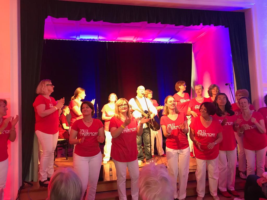 Es war wie ein Familientreffen, das gemeinsame Jubiläumskonzert von MissHarmony und Düssharmonie am 19. Mai. Harmonisch und voller Freunde und Freude, vor ausverkauftem Haus. Unser Afterglow dauerte weit in den Abend hinein, auch dank der tollen Akustik im Treppenhaus der Hildener Musikschule. Wir wollen es bald wieder tun! Gibt es etwas Schöneres, als sich zu treffen und gemeinsam singen? Besonderer Dank gilt auch unserem Chorleiter Martin Falke und natürlich auch der Düssharmonie-Chorleiterin Elisabeth „Kitty“ Kittelmann.