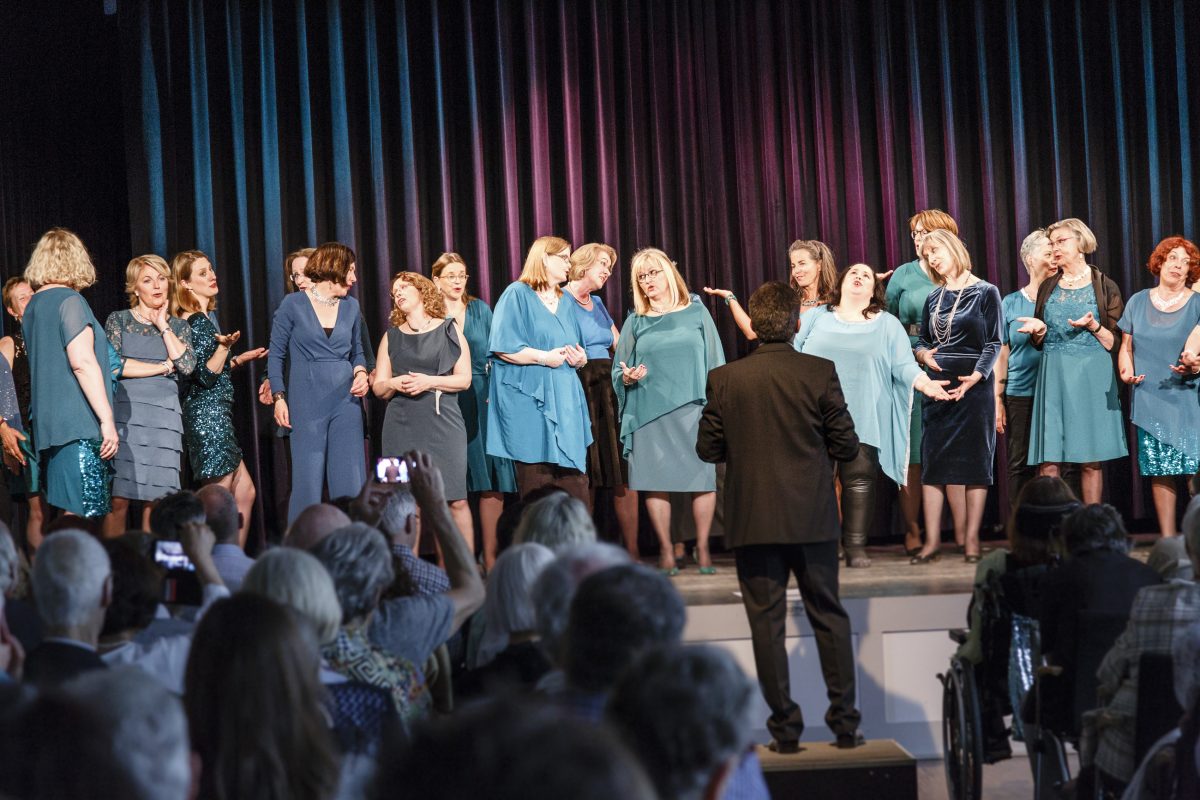 Unsere Projektchorteilnehmerinnen haben die Feuertaufe bestanden! Zwölf der neunzehn Teilnehmerinnen standen gestern abend zusammen mit MissHarmony auf der Bühne der Kulturvilla Mettmann vor einem begeisterten Publikum. Wir danken allen Teilnehmerinnen und besonders auch der DÜSSHARMONIE und den Quartetten Akimbo und Lind für diesen gelungenen Abend! Klasse Stimmung, tolle Leute.